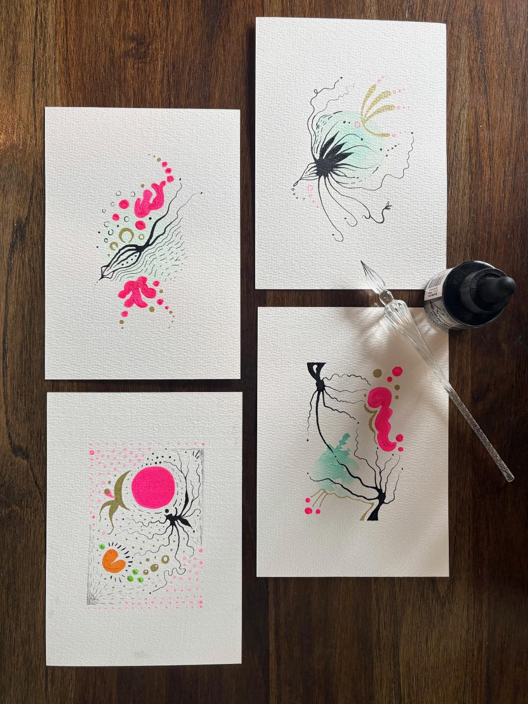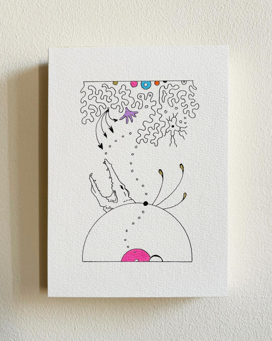 Anna Demian is an artist, musician, and writer located in Ditmas Park, Brooklyn. Her works are heavily influenced by science and nature and strive to convey interconnectedness and movement. Currently, she is creating multimedia visual art on paper, household and natural objects, and small sculpted forms. In addition to her visual works she is the author of Passage: Places to go in your dreams a book of prose poetry exploring dream geography and logic.
