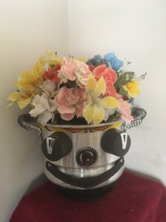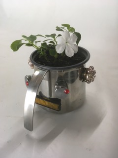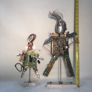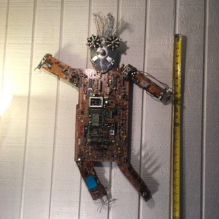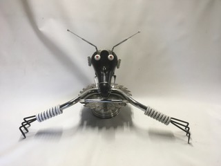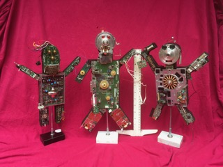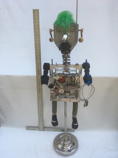 John Russo Jr is a retired window display artist and has been making things using only recycled materials, including but not limited to every day items and objects. These intricate artworks can range from a couple of inches to a few feet. Among the works he has created you will see one of a kind robot like figures, garden art, clocks and even steam punk inspired pieces.